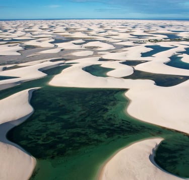 Les Lençois Maranhenses sont la destination finale du voyage. Ces vastes étendues de dunes de sable immaculé et de lagunes turquoise se multiplient à l'infini, créant un mirage fascinant. La ville d'Atins, avec ses rues de sable et son style rustique vous invite à participer de son rythme détendu, mais ne vous laissez pas tromper… Vous pourrez également profiter de services et d'hébergements haut de gamme, qui vous garantiront un séjour luxueux et confortable. Que vous soyez en quête d'aventure ou de relaxe, les Lençois Maranhenses sont l'endroit idéal pour satisfaire toutes vos envies de voyage.